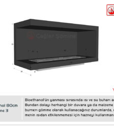 Bioethanol’ün yanması sırasında ısı ve su buharı açığa çıkar. Bundan dolayı herhangi bir baca çıkışına ihtiyaç duymazsınız. Sıvı yakıtı içinde depoladığından ve manuel olarak ateşlediğinden dolayı, herhangi bir elektrik bağlantısına ihtiyaç kalmaz.